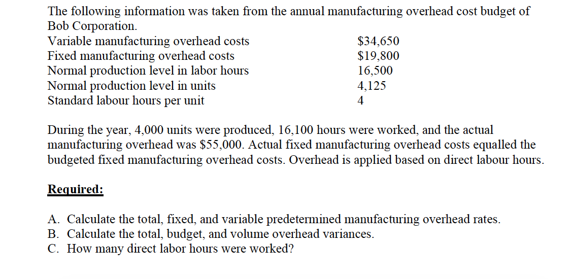 [Solved] OVERHEAD VARIANCE ANALYSIS Question 13 are based on the What Are The Fixed Overhead Cost fixed overhead is a set of costs that do not vary as a result of changes in activity. fixed overhead costs refer to expenses that remain constant within a certain range of activity or production, regardless of. fixed overheads are costs that remain constant every month and do not change with changes in business activity levels. . What Are The Fixed Overhead Cost.